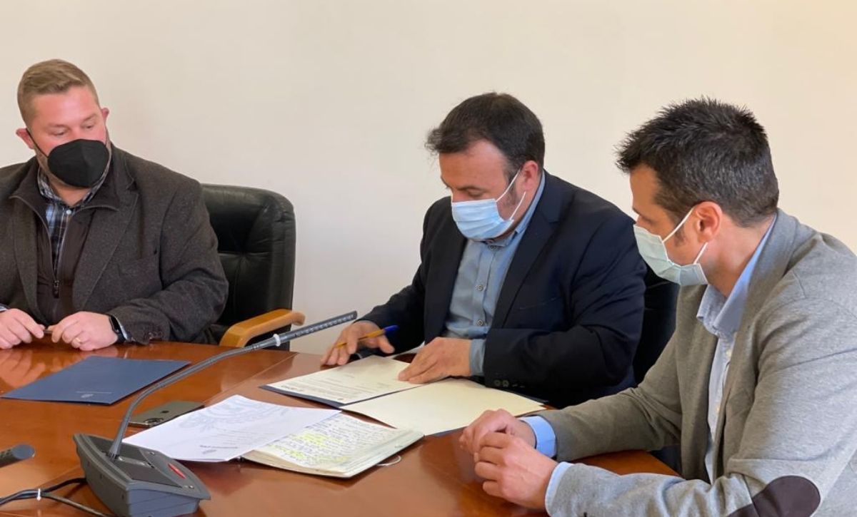 Els regidors de Benestar Social, Mariano Valera, de Recursos Humans, Ramón Abad, i de Promoció Econòmica, Carles Molina, i el gerent de l’associació, Carlos Giner, signen un conveni orientat a posar en marxa un curs de protocol, d’atenció al públic i de gestió d’esdeveniments per a millorar les competències professionals de joves amb diversitat funcional
