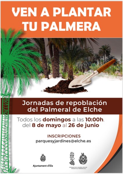 Les “Jornades de repoblació del Palmerar Històric d’Elx” es duran a terme tots els diumenges des del 8 de maig fins al 26 de juny i estan obertes a tota la població, associacions i entitats