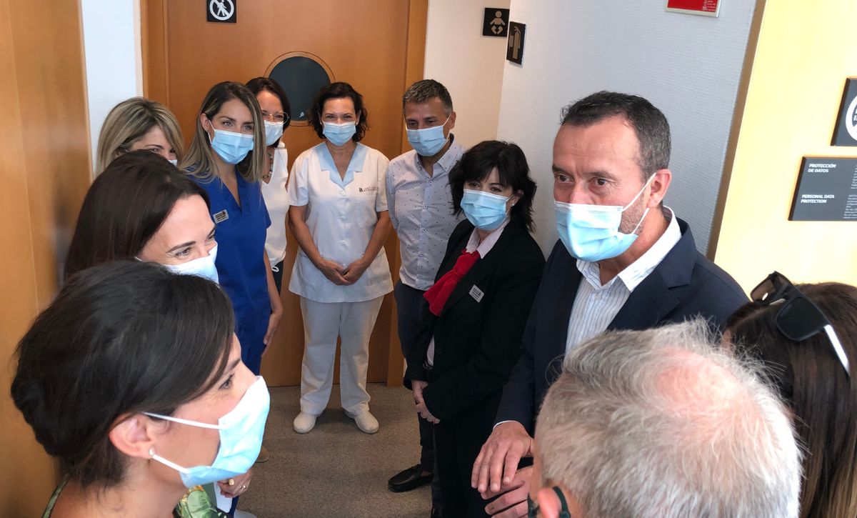 L’alcalde, Carlos González; l’edil de Sanitat, Mariola Galiana; el vicerector d’Investigació de la UMH, Domingo Orozco, i la codirectora mèdica del Grup Institut Bernabeu, la doctora Andrea Bernabeu, participen en la commemoració de l’efemèride a les instal·lacions de la clínica a la ciutat