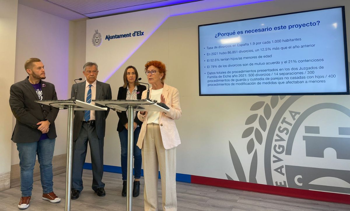 L’Ajuntament d’Elx i la Fundació Salut Infantil han posat en marxa un servei gratuït per a acompanyar i assessorar famílies en procés de divorci. El regidor de Drets Socials, Mariano Valera, l’edil d’Educació, María José Martínez, el president de la Fundació, Fernando Vargas, i la vocal de l’entitat i responsable del projecte, Isabel Rubio, han presentat aquesta iniciativa amb la qual les persones afectades podran sol·licitar informació mitjançant el telèfon 627 386 358 de 9.00 a 15.00 hores o a través del correu hola@fundacionsaludinfantil.org.