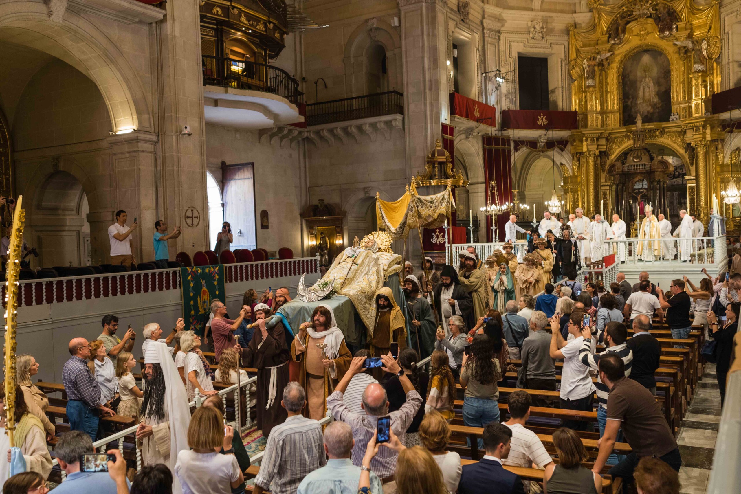 L’alcalde, Carlos González, i la regidora de Cultura, Marga Antón, assisteixen a l’acte que s’ha desenvolupat en finalitzar la Festa en una basílica de Santa Maria repleta de públic desitjós de veure la coronació de la Verge de l’Assumpció