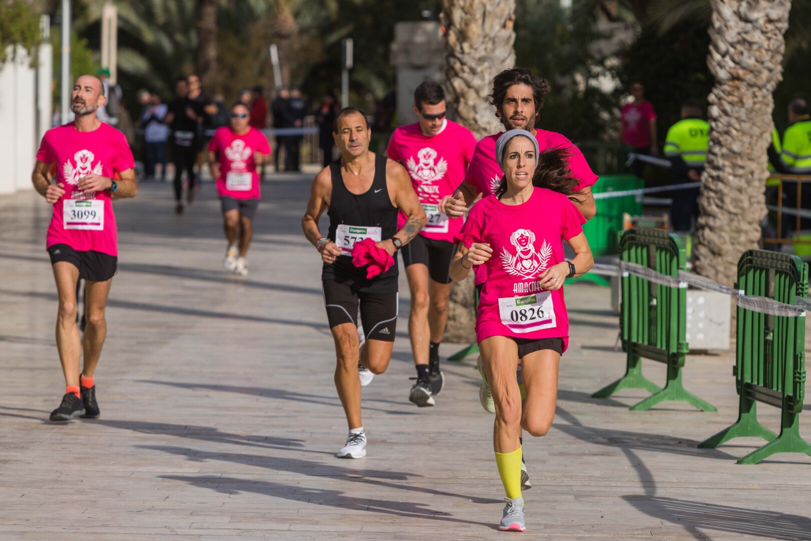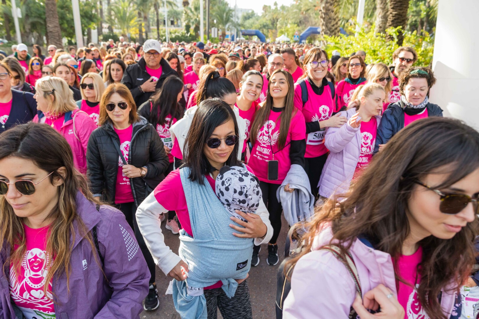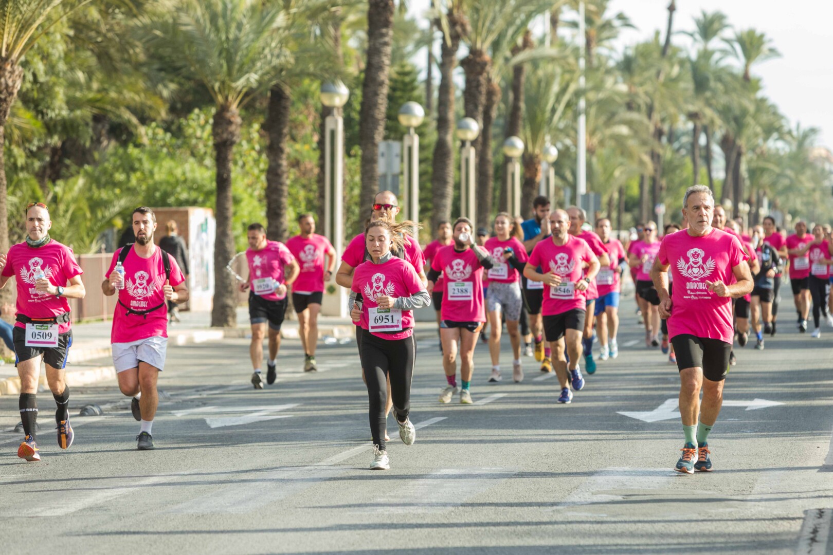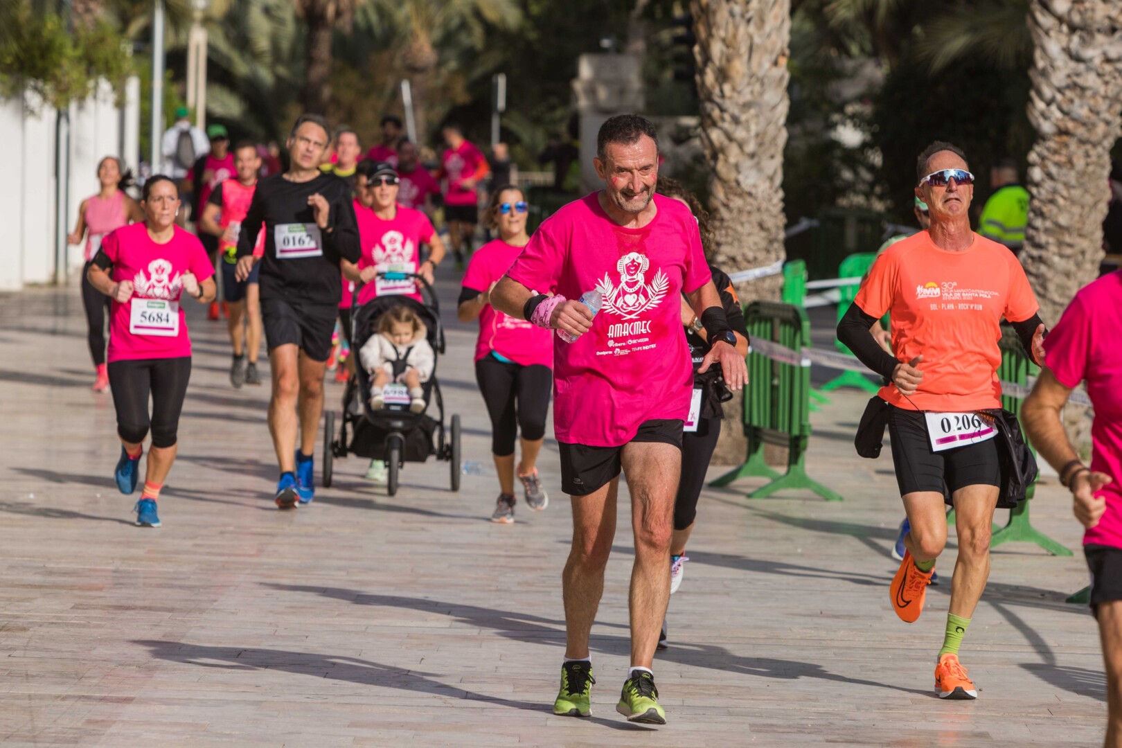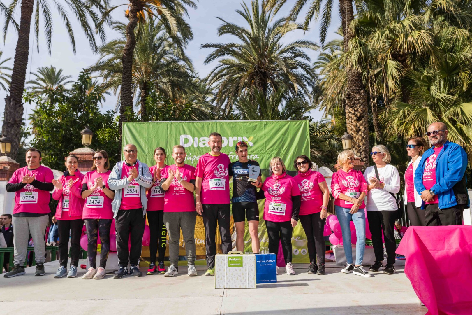 Més de 8.000 persones han participat en la XVIII Carrera Contra el Càncer de Mama, organitzada per l’Associació de Dones Afectades per Càncer de Mama d’Elx i Comarca (AMACMEC). Una assenyalada trobada en la qual els participants han lluït per primera vegada la samarreta que commemora el 125 aniversari del descobriment de la Dama d’Elx amb la qual s’han tenyit de rosa els carrers il·licitans durant tot el matí. L’alcalde, Carlos González, el regidor d’Esports, Vicente Alberola, i membres de l’Equip de Govern, així com la presidenta d’AMACMEC, Manuela Agulló, han donat el tret d’eixida des del Passeig de l’Estació, on també ha sigut l’arribada a meta i on s’han instal·lat punts d’avituallament, estands d’Amacmec o de l’hospital del Vinalopó i el servei de fisioteràpia de la universitat CEU Elx.
