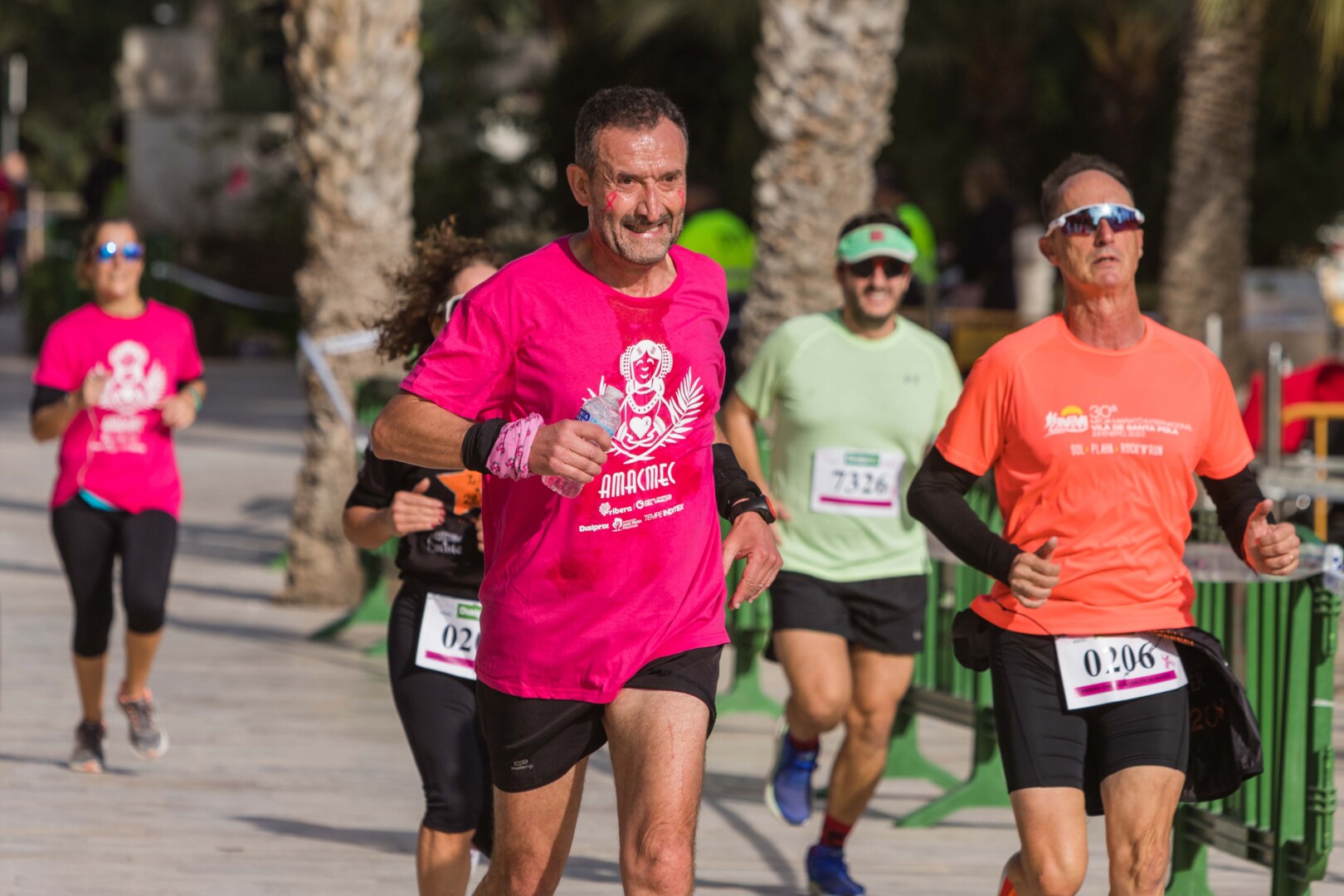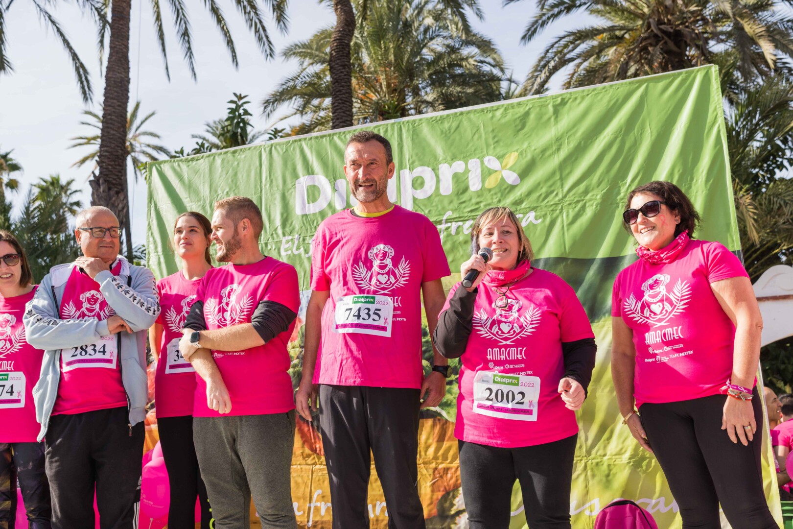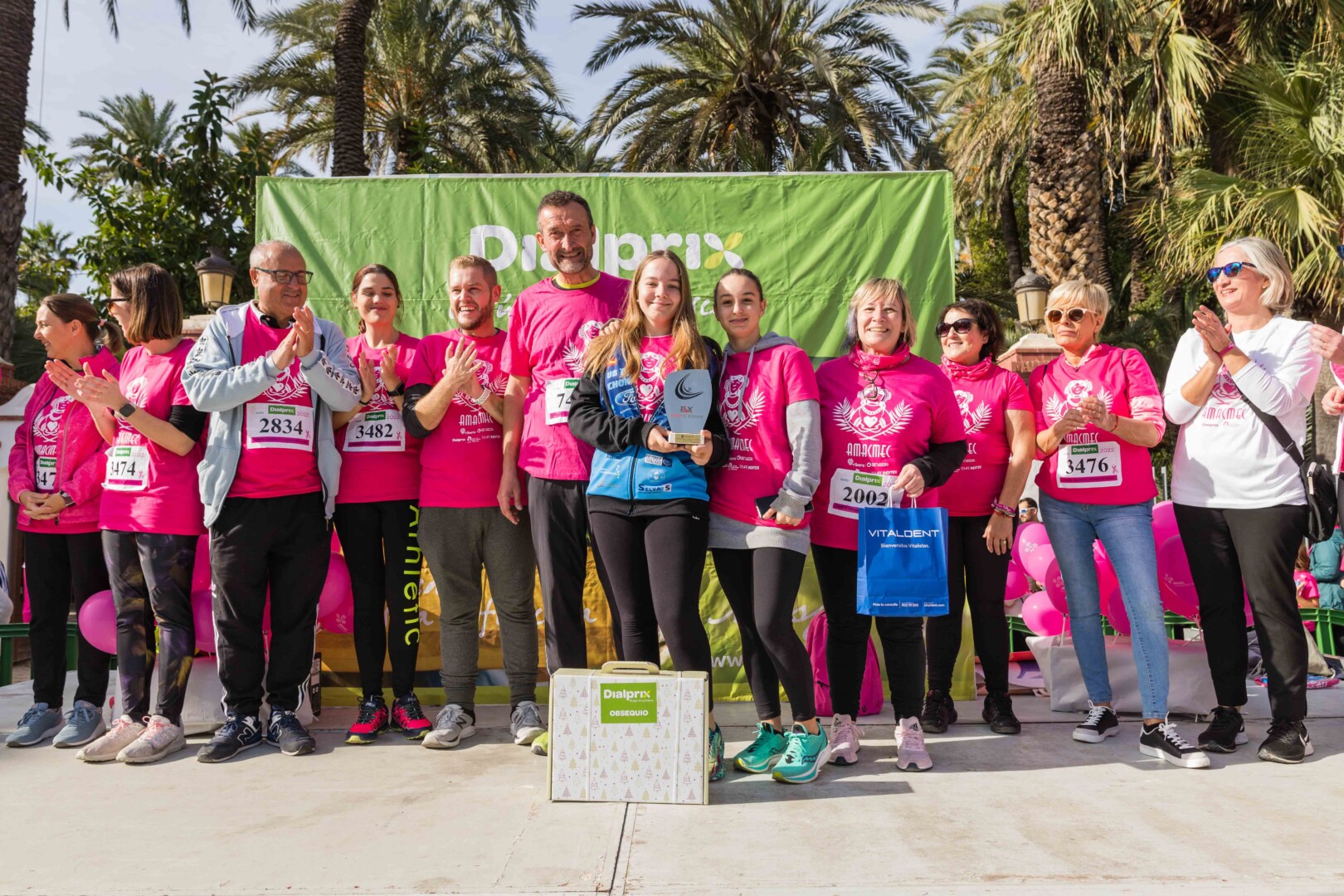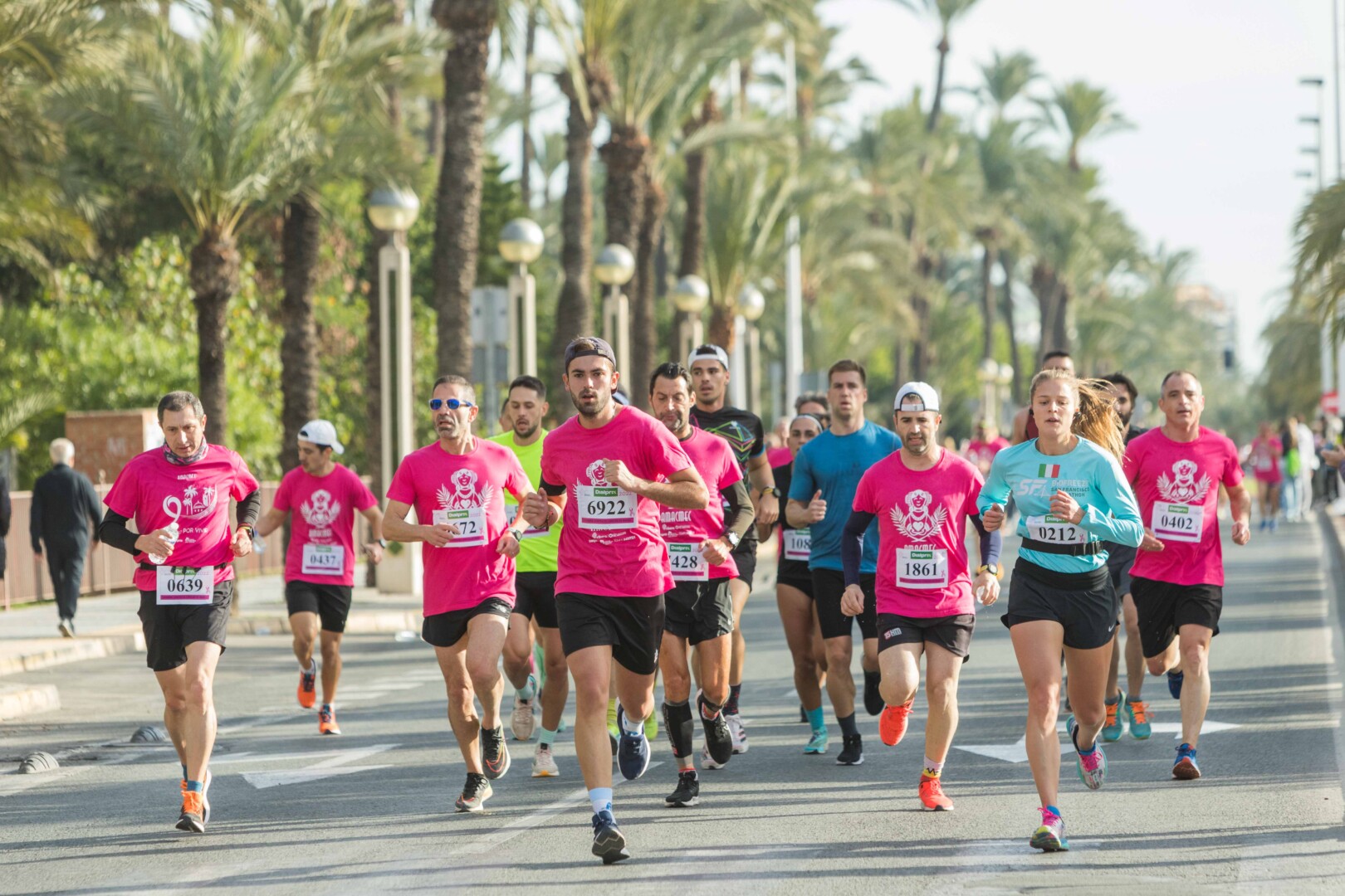 Més de 8.000 persones han participat en la XVIII Carrera Contra el Càncer de Mama, organitzada per l’Associació de Dones Afectades per Càncer de Mama d’Elx i Comarca (AMACMEC). Una assenyalada trobada en la qual els participants han lluït per primera vegada la samarreta que commemora el 125 aniversari del descobriment de la Dama d’Elx amb la qual s’han tenyit de rosa els carrers il·licitans durant tot el matí. L’alcalde, Carlos González, el regidor d’Esports, Vicente Alberola, i membres de l’Equip de Govern, així com la presidenta d’AMACMEC, Manuela Agulló, han donat el tret d’eixida des del Passeig de l’Estació, on també ha sigut l’arribada a meta i on s’han instal·lat punts d’avituallament, estands d’Amacmec o de l’hospital del Vinalopó i el servei de fisioteràpia de la universitat CEU Elx.