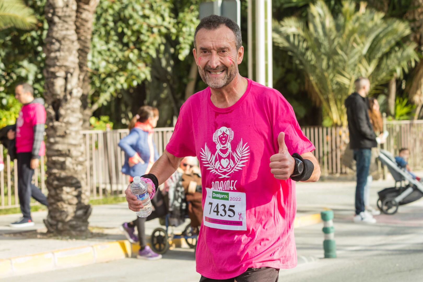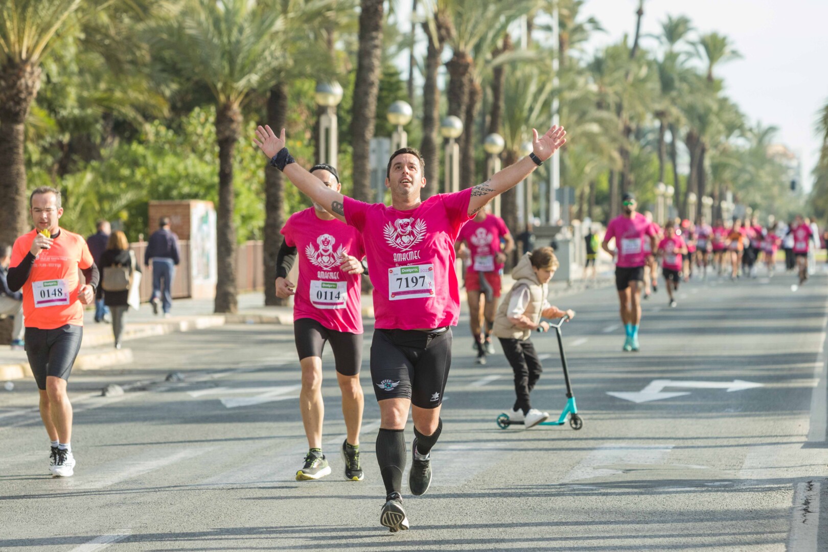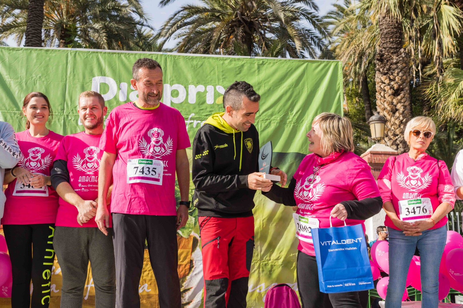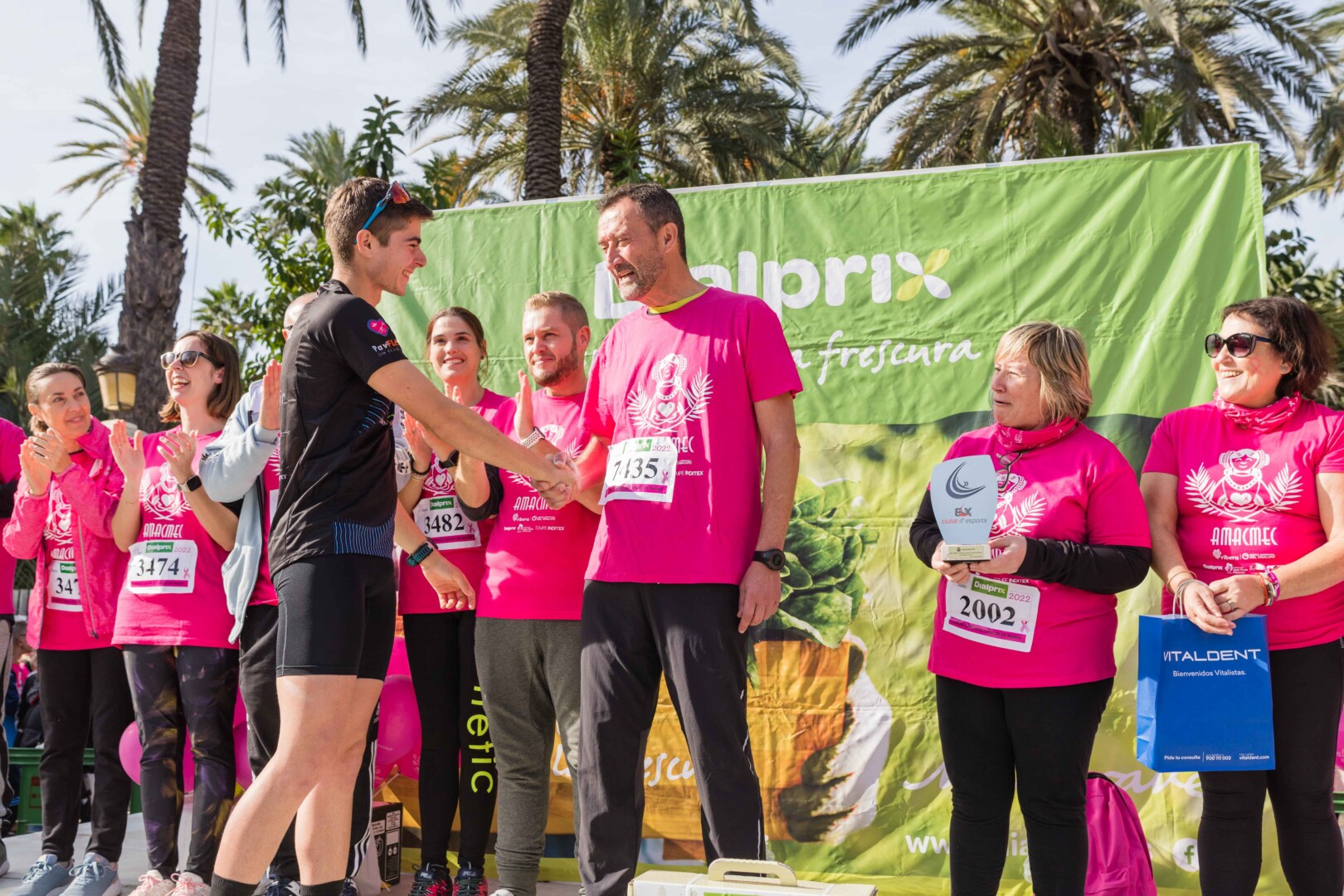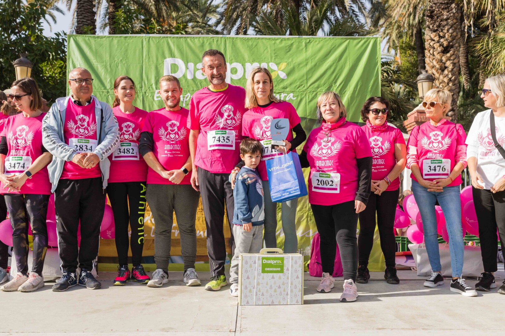 Més de 8.000 persones han participat en la XVIII Carrera Contra el Càncer de Mama, organitzada per l’Associació de Dones Afectades per Càncer de Mama d’Elx i Comarca (AMACMEC). Una assenyalada trobada en la qual els participants han lluït per primera vegada la samarreta que commemora el 125 aniversari del descobriment de la Dama d’Elx amb la qual s’han tenyit de rosa els carrers il·licitans durant tot el matí. L’alcalde, Carlos González, el regidor d’Esports, Vicente Alberola, i membres de l’Equip de Govern, així com la presidenta d’AMACMEC, Manuela Agulló, han donat el tret d’eixida des del Passeig de l’Estació, on també ha sigut l’arribada a meta i on s’han instal·lat punts d’avituallament, estands d’Amacmec o de l’hospital del Vinalopó i el servei de fisioteràpia de la universitat CEU Elx.