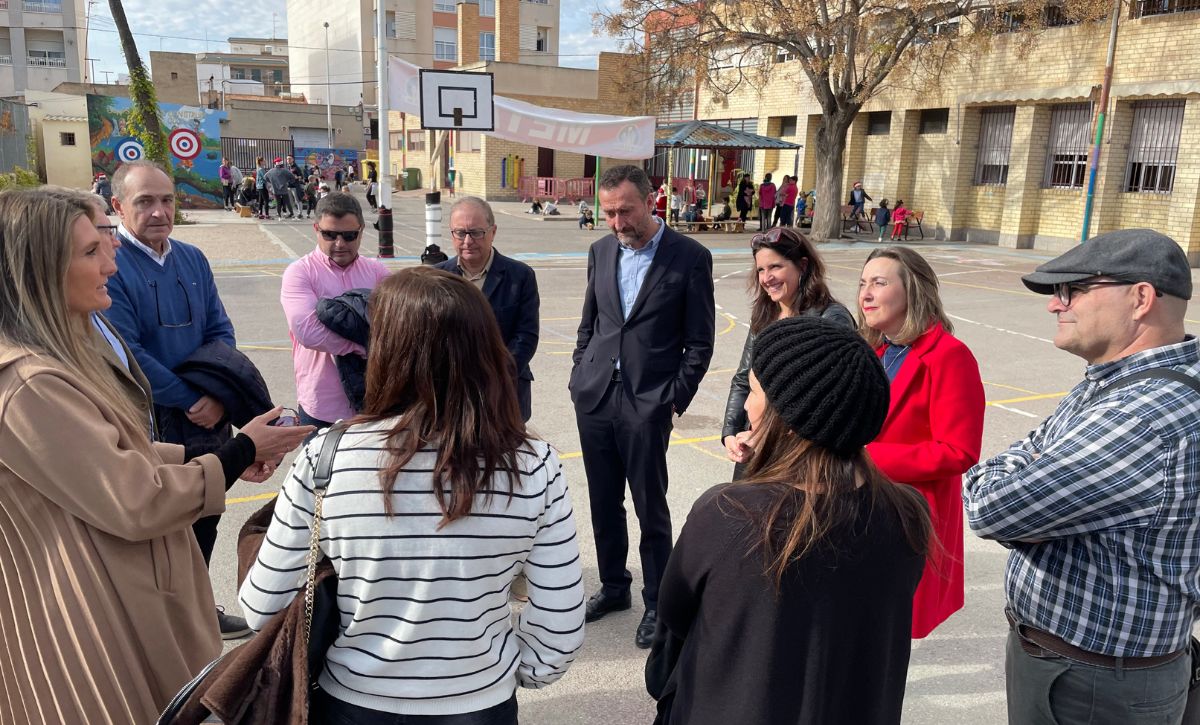 L’alcalde d’Elx, Carlos González, i la regidora d’Educació, María José Martínez, han visitat el col·legi de la Baia on ja s’estan fent els treballs previs per a l’inici d’obres d’ampliació del centre. Allí han mantingut una trobada amb l’equip directiu del centre, representants de l’AMPA, tècnics i representants de l’empresa que durà a terme l’obra.