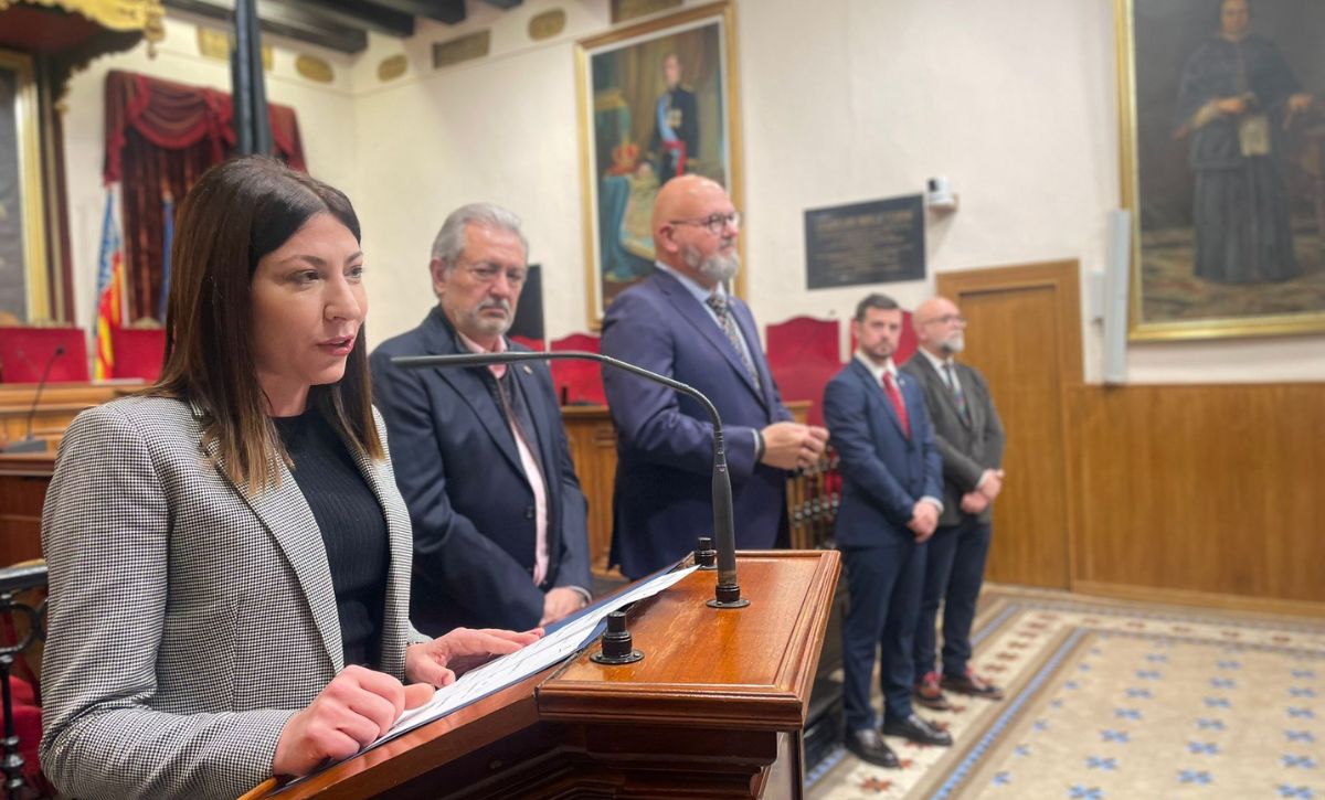 L’edil Mariola Galiana, al costat de membres de l’Equip de Govern, assisteix a l’acte de presentació que s’ha dut a terme al Saló de Plens i mostra el seu compromís de continuar treballant perquè la Setmana Santa siga reconeguda i declarada com a ‘Festa d’Interés Turístic Autonòmic’