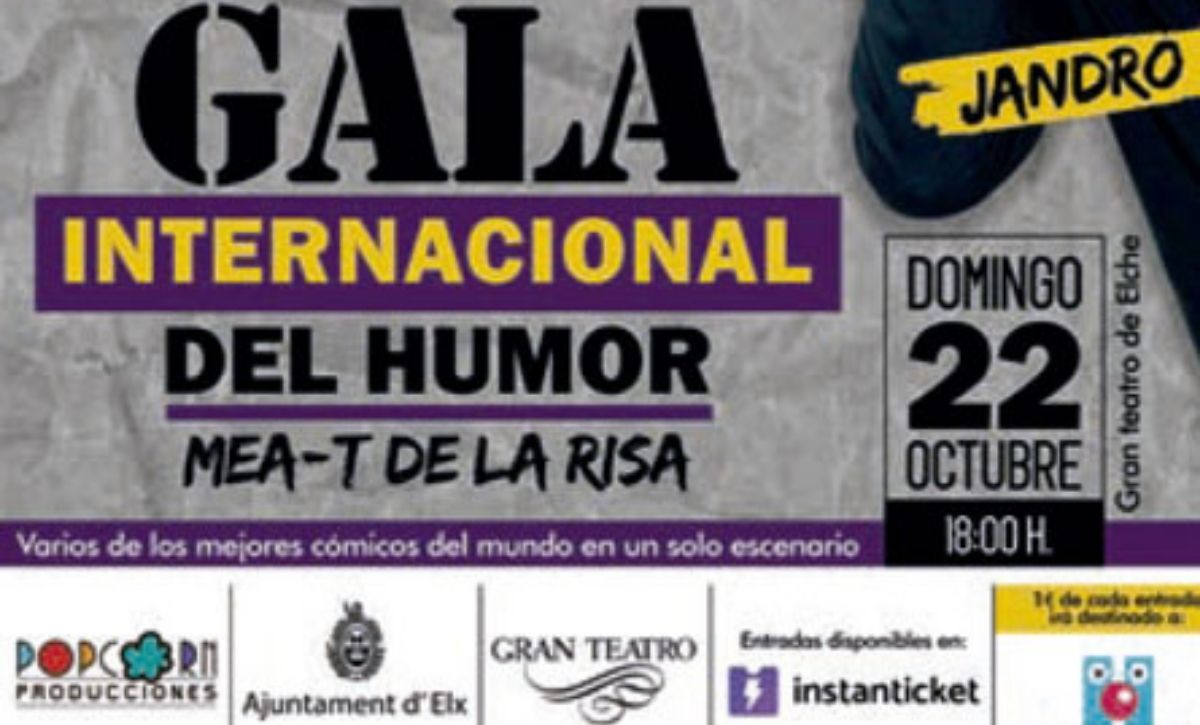 El Gran Teatre d’Elx acull aquest diumenge a les 18 hores la Gala Internacional de l’humor Mea-T de la Risa, en la qual diversos dels clowns i còmics més reconeguts i premiats d’Espanya es donen cita en una gala conduïda pel mag i presentador televisiu Jandro.