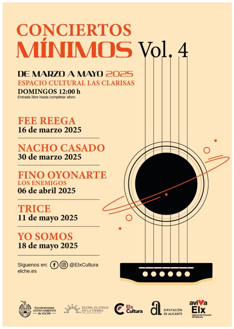 El nou cicle té programades diferents propostes musicals en els matins dels diumenges entre els mesos de març a maig. Tal com ha detallat Alejandro Tébar, productor del cicle, la programació començarà el 16 de març amb l’artista alemanya Fee Reega, continuarà el 30 de març amb l’il·licità Nacho Casado, el 6 d’abril el cicle comptarà amb la música de Fino Oyonarte Los Enemigos i l’11 de maig es podrà gaudir dels versos musicalitzats de Trice. A més, els Concerts Mínims es clausuraran amb la banda valenciana Yo, somos, que actuarà el 18 de maig.