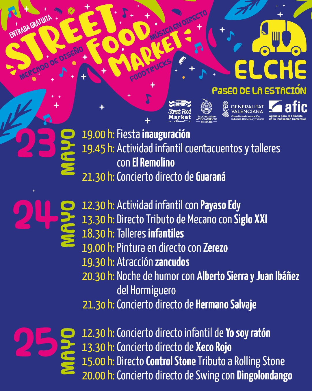 L’Ajuntament d’Elx, a través de la Regidoria de Comerç, ha presentat la nova edició de l’Elx Street Food Market, que tindrà lloc al passeig de l’Estació el cap de setmana del 23 al 25 de maig.