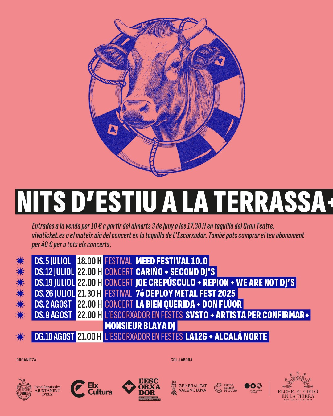 Dins de la programació estival destaca el Festival MEED de música electrònica, art i moda, que se celebrarà del 5 al 10 de juliol amb el concert del grup il·licità La126 i Alcalá Norte. “Es tracta d’un dels festivals més consolidats a Elx, pel qual van passar més de 5.000 persones l’any passat i els concerts del qual s’emmarquen dins de la celebració d’este Any Jubilar”, ha destacat Ruiz.