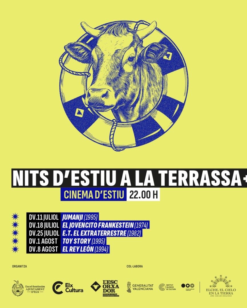 D’altra banda, el cine també tindrà una importància especial este estiu amb el Cine d’Estiu, que inclourà pel·lícules familiars clàssiques com E.T., El Extraterrestre, Jumanji, Toy Story o El Rey León. A més, es projectarà El jovencito Frankenstein, que enguany compleix mig segle. El cine serà totalment gratuït amb aforament a la terrassa.