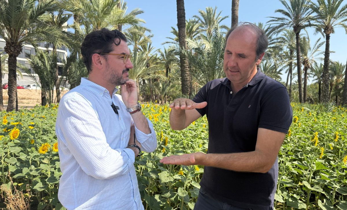 El regidor de Serveis Públics, Claudio Guilabert, ha visitat l’hort de Bon Lladre, situat a la vessant del riu Vinalopó, on, dins del projecte de recuperació d’horts històrics del municipi, s’ha dut a terme la plantació de gira-sols.