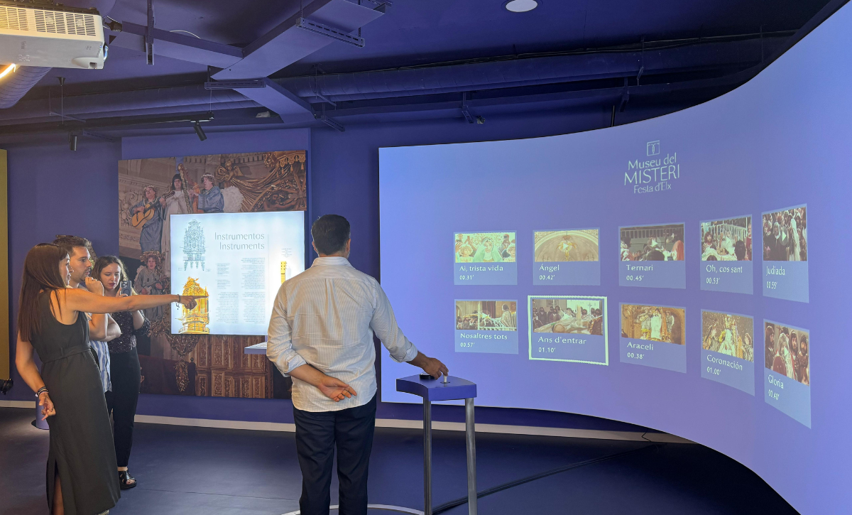 Un espai cultural que canvia completament el paradigma a l’hora d’entendre la Festa. Així, en la zona de l’ermita de Sant Sebastià, que s’ha incorporat al discurs expositiu, els visitants poden gaudir d’un audiovisual dirigit per Pablo Mas i protagonitzat pels xiquets de l’Escolania, que contextualitza sobre el Misteri d’Elx abans de visitar la resta del museu.