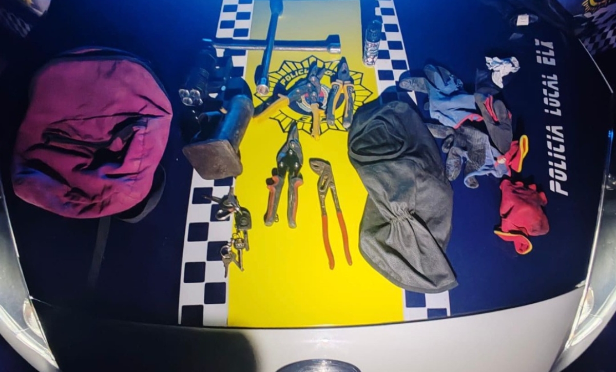Posteriorment, el perjudicat del robatori va poder identificar de la seua propietat diverses de les ferramentes que portava el detingut, entre elles una clau de tub per a canviar rodes, tisores de tall de metall i alicates.