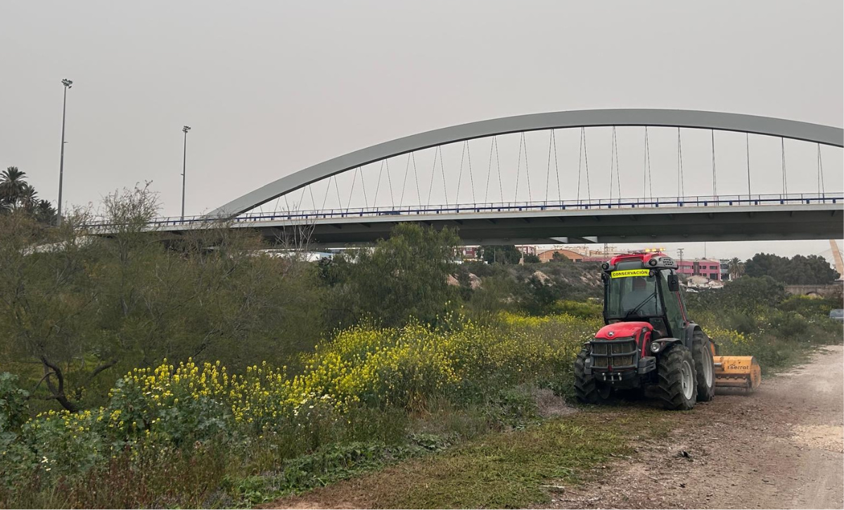 L’Ajuntament d’Elx, a través de la Regidoria de Medi Ambient, ha iniciat els treballs de neteja, desbrossament i adequació de la sendera sud del riu Vinalopó, un recorregut de 40 quilòmetres habilitat l’any passat i que connecta diferents enclavaments naturals del terme municipal.