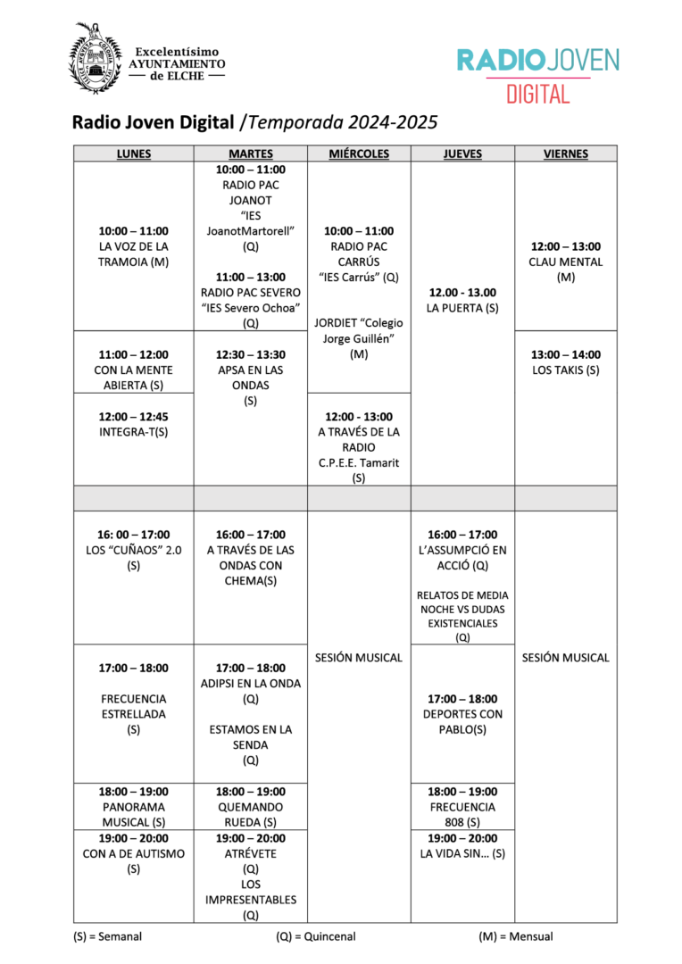 Radio Joven Digital és un programa d’oci educatiu inclusiu, alternatiu i saludable per a joves del municipi amb edats compreses entre els 12 i 30 anys.
